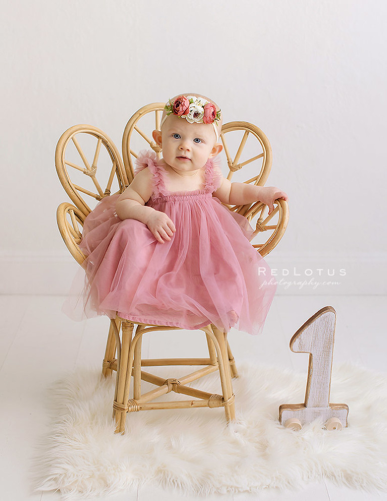 Before her cake smash, we took some time for portraits on a classic white backdrop. I love the simple elegance.