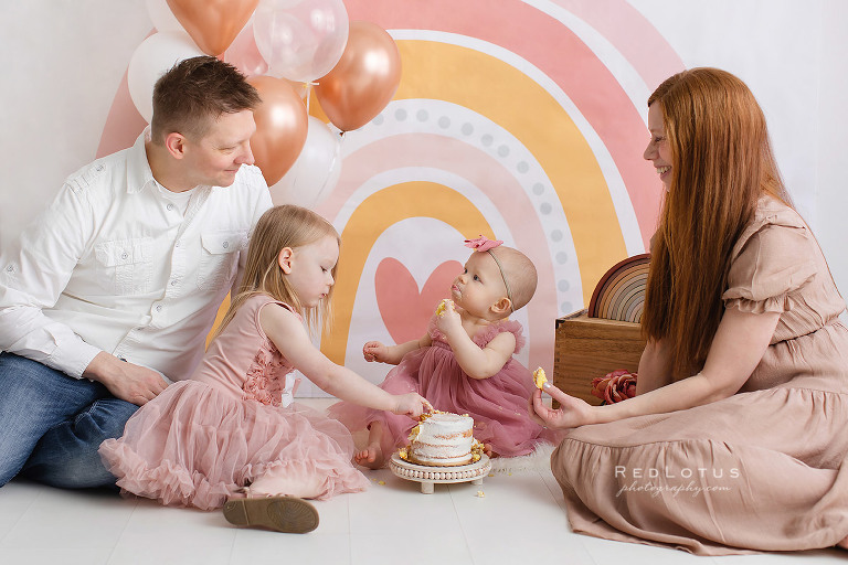 Ohhh, what an adorable theme we did for this little angel’s first birthday cake smash! The dusty rose, pink and gold colors made for a sweet boho rainbow theme that fit her perfectly.