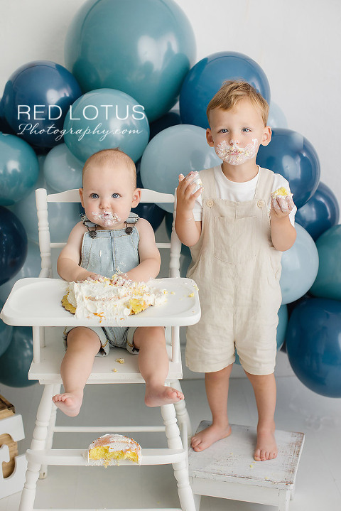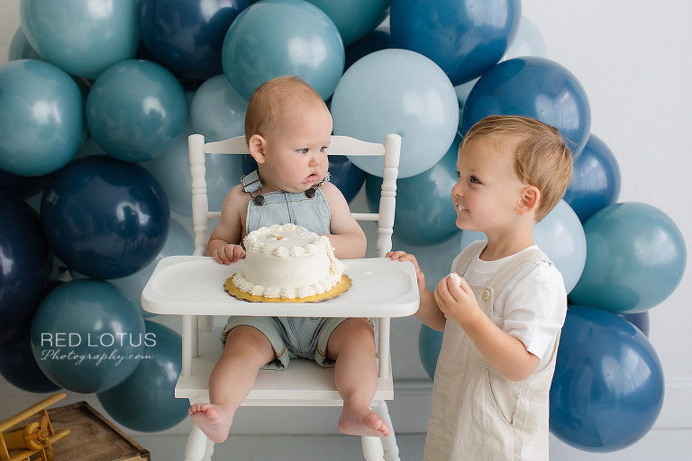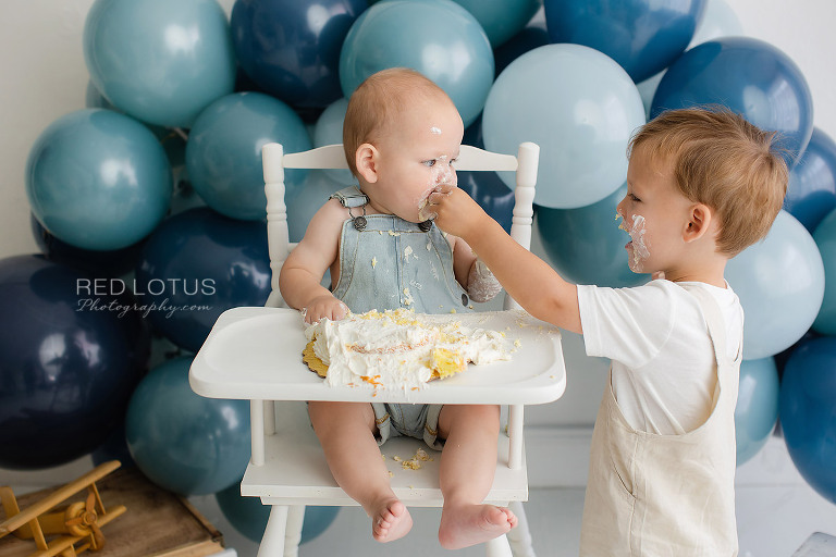 You’re not quite sure about this cake smash thing, but luckily, big brother is here to show you how it’s done.