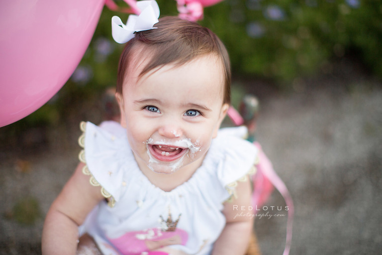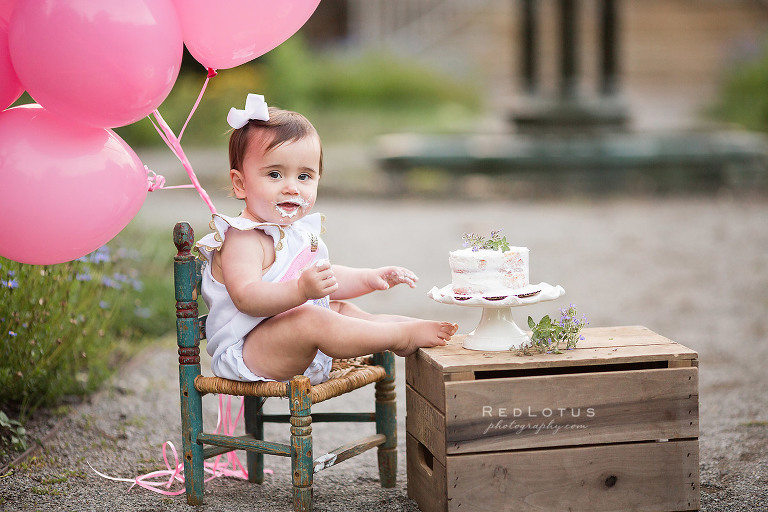 Have I ever told you how much I LOVE cake smash photo sessions? Oh my goodness, I can’t enough of them. There is nothing better than seeing a one year old child have a blast smooshing a cake with their little hands (and sometimes feet!), and then seeing them look up at you with that big frosting-covered grin. But first, we always take some nice portraits before we make the big mess!